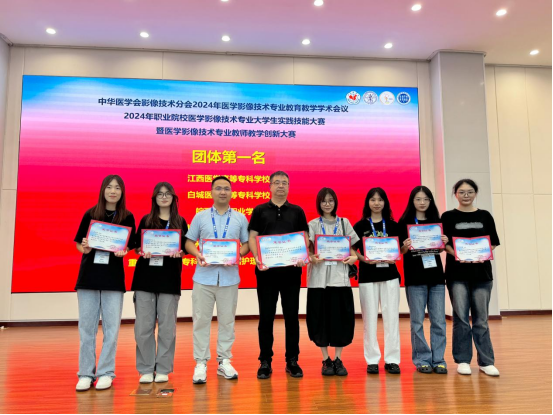 9月19日至22日,2024年職業(yè)院校醫(yī)學(xué)影像技術(shù)專業(yè)大學(xué)生實踐技能大賽在江西上饒舉行,我校醫(yī)學(xué)技術(shù)與工程學(xué)院醫(yī)學(xué)影像技術(shù)專業(yè)獲得團(tuán)體一等獎,并獲單項一等獎三項、三等獎兩項的好成績,杜世遠(yuǎn)、曾良成和吳沁三位老師獲得“優(yōu)秀指導(dǎo)教師”榮譽(yù)稱號。