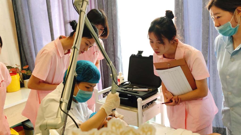 隨后,同學(xué)們分為四組,分別體驗(yàn)前臺(tái)接待、皮膚檢測(cè)與咨詢、超皮秒治療觀摩以及超皮秒術(shù)后護(hù)理的實(shí)踐操作,并用自己所學(xué)的知識(shí)為到場(chǎng)的媽媽顧客們?cè)敿?xì)講解超皮秒治療按摩的原理以及術(shù)后護(hù)理方法,參加活動(dòng)的媽媽們紛紛表示看到同學(xué)們能夠?qū)⑺鶎W(xué)知識(shí)融會(huì)貫通,真是充分感受到了職業(yè)教育的魅力。