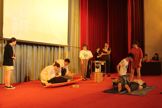 來自各系共5支參賽隊伍用情景劇的形式,巧妙設計生活情境,生動直觀地為在場師生展現(xiàn)了心肺復蘇、急救包扎等十一項專業(yè)急救技能,情節(jié)都來自日常生活中的各種突發(fā)事件,現(xiàn)場同學在感受生動劇目的同時,更為選手們專業(yè)嫻熟的技能所感染。