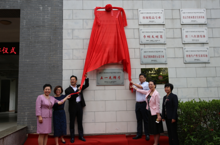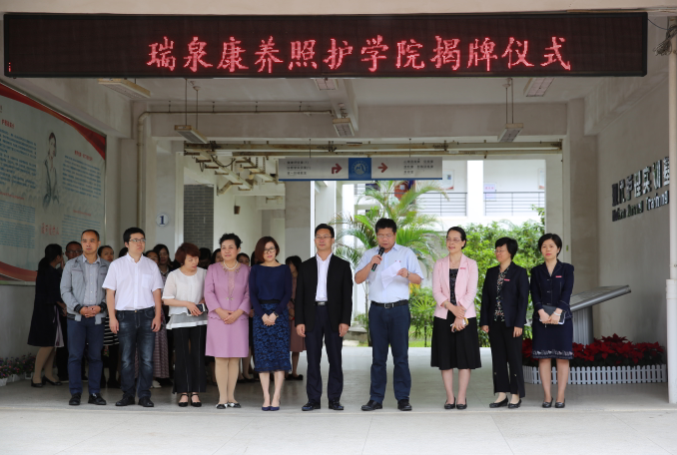 在全場嘉賓的熱烈掌聲中,蘇友新院長、鄭翠紅副院長、謝濤書記、閆仕政先生、劉毅玲女士、張振香女士共同為 “瑞泉康養(yǎng)照護(hù)學(xué)院”揭牌,這標(biāo)志著瑞泉康養(yǎng)照護(hù)學(xué)院正式成立運(yùn)行。瑞泉康養(yǎng)照護(hù)學(xué)院的成立,是我院深化校企合作,推進(jìn)產(chǎn)教融合的一項(xiàng)重要建設(shè)項(xiàng)目。雙方將以此為契機(jī),構(gòu)建協(xié)同育人機(jī)制,將康養(yǎng)照護(hù)學(xué)院共建成為一個(gè)集教學(xué)、培訓(xùn)和研發(fā)等功能于一體的康養(yǎng)照護(hù)人才培養(yǎng)培訓(xùn)基地和應(yīng)用技術(shù)創(chuàng)新服務(wù)平臺(tái),為福建省當(dāng)前急需的養(yǎng)老照護(hù),居家照護(hù)、康復(fù)護(hù)理等提供人才支持和技術(shù)支撐,同時(shí)院還將持續(xù)推進(jìn)職業(yè)教育精準(zhǔn)技術(shù)教育扶貧工作,探索職業(yè)教育扶貧的內(nèi)涵,培養(yǎng)一批符合現(xiàn)代健康服務(wù)理念,對(duì)接健康產(chǎn)業(yè)需求的“下得去、留得住”的康養(yǎng)照護(hù)人才,幫助南平地區(qū)部分貧困家庭實(shí)現(xiàn)教育脫貧,擔(dān)當(dāng)起職業(yè)教育服務(wù)社會(huì)、服務(wù)學(xué)生發(fā)展的教育職能。