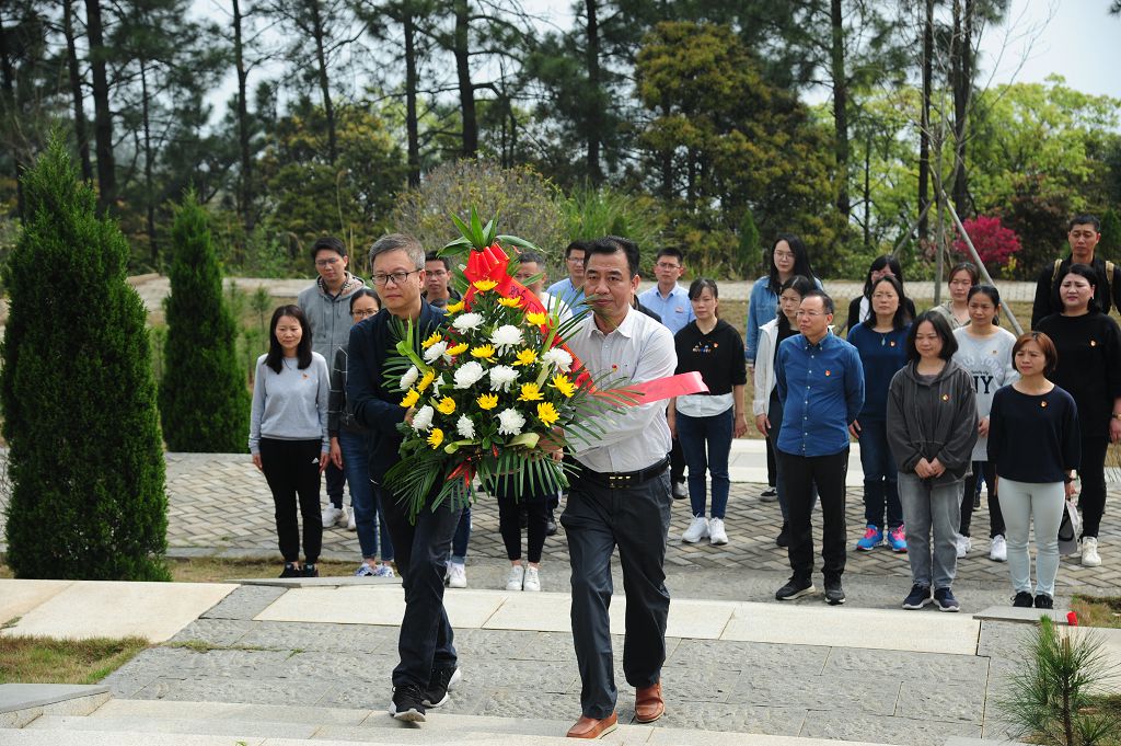 藥學(xué)院第二黨支部廖偉堅(jiān)同志與福建省醫(yī)藥有限責(zé)任公司黨總支王鶯書記代表全體黨員向紅軍烈士敬獻(xiàn)花籃,寄托哀思,表達(dá)無限敬仰之情。