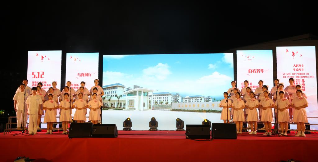 晚會(huì)尾聲,現(xiàn)場臺上臺下全體師生齊唱校歌《仁心如花》,“業(yè)精德誠就為這身白褂,我們齊塑天使榜樣”的歌聲飽含著閩衛(wèi)院人對大愛的追求和對仁術(shù)的堅(jiān)守。