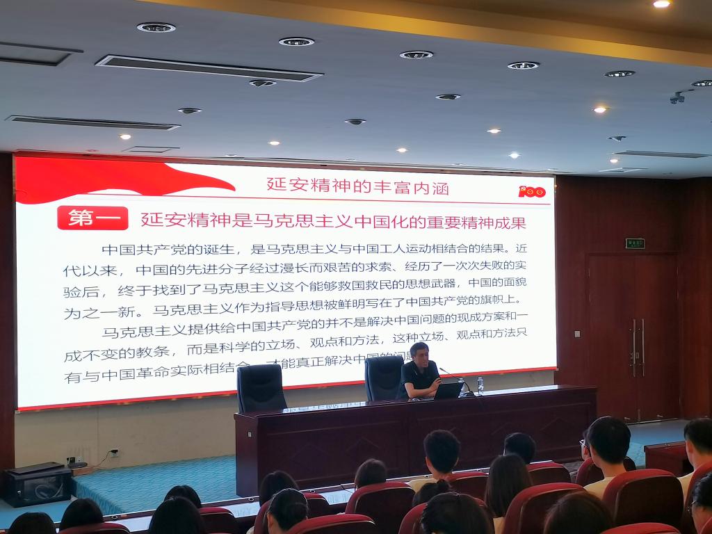 2020年4月,習(xí)近平總書記在陜西考察時指出:“延安精神培育了一代代中國共產(chǎn)黨人,是我們黨的寶貴精神財富?!睘榱俗寣W(xué)子們能夠深刻認(rèn)識、了解延安精神,洪聿榮從“什么是延安精神”、“延安精神的豐富內(nèi)涵”、“青年學(xué)子要從延安精神中學(xué)到什么”這幾個方面結(jié)合自己的親身經(jīng)歷進行闡述。同時還勉勵青年學(xué)子們要保持“心之所向,素履以往”的理想信念;要提升“人生在勤,不索何獲”的學(xué)習(xí)理念;要提升“砥志研思,精進不休”的學(xué)習(xí)動力。用更高的標(biāo)準(zhǔn)來嚴(yán)格要求自己、磨礪自己,繼續(xù)傳承和發(fā)揚艱苦奮斗、知難而上、奮勇前行的精神,讓青春無悔成就人生大我。