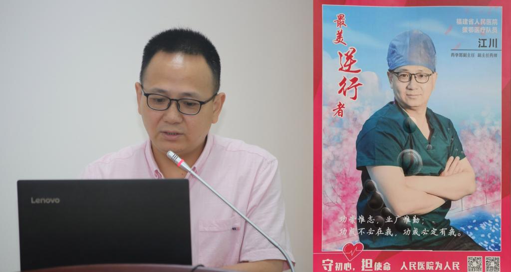游鋒強調(diào),近年來在校黨委的正確領導及教務處的大力推動下,我校課程思政開展得有聲有色,但校院深度合作探索課程思政育人尚不多見,福建中醫(yī)藥大學附屬人民醫(yī)院藥學部是我校藥學院的優(yōu)質(zhì)實習點,擁有優(yōu)秀的思政育人氛圍,不論是江川同志的援鄂經(jīng)歷還是藥學部的日常工作,其中都有不少思政素材可以挖掘,應將它們提煉并融入教學,提升育人成效。他希望大家充分認識優(yōu)質(zhì)實習單位在育人中的重要作用,不斷加強校院合作,將為黨育人、為國育才的工作做得更好。