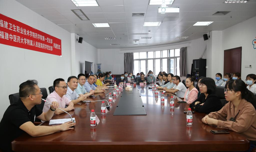 活動伊始,藥學院第一黨支部書記何舒瀾與福建中醫(yī)藥大學附屬人民醫(yī)院藥學黨支部書記江川共同簽署結(jié)對共建協(xié)議書,在與會黨員的見證下鄭重承諾:將從抗疫精神中共同凝練優(yōu)秀精神基因,共研課程思政、共探思政元素、共建思政資源、共育思政能力、共評思政成效,以生為本,共商共議,校院互補,優(yōu)勢疊加,探索構(gòu)建“校院思政育人共同體”,共同打造課程思政示范項目。