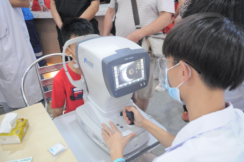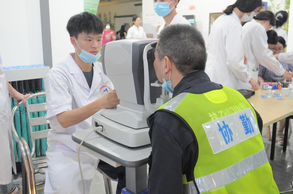 宣傳科學(xué)用眼,共享“睛”彩。眼視光技術(shù)專業(yè)師生由黨員教師張敏華帶隊(duì),在義診現(xiàn)場(chǎng)用專業(yè)儀器為群眾開展驗(yàn)光檢查。師生們?yōu)槿罕娂?xì)心解讀驗(yàn)光檢測(cè)結(jié)果,耐心講解愛眼護(hù)眼的方法,引導(dǎo)特殊情況及時(shí)就醫(yī)。