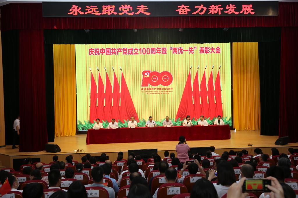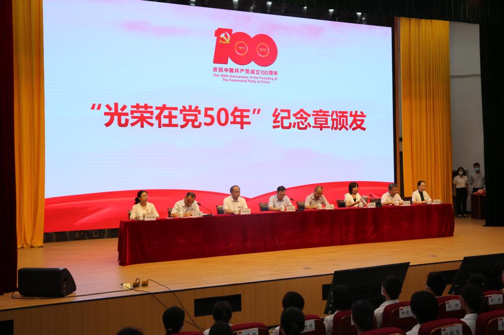 下午,巡回指導(dǎo)組一行列席參加了學(xué)校慶祝中國共產(chǎn)黨成立100周年暨“兩優(yōu)一先”表彰大會,現(xiàn)場觀摩學(xué)校頒發(fā)“光榮在黨50年”紀念章、執(zhí)教丹心傳承儀式、“兩優(yōu)一先”表彰、新入黨教師黨員、學(xué)生黨員代表入黨宣誓、黨委書記開設(shè)專題黨課、師生唱紅歌等活動。