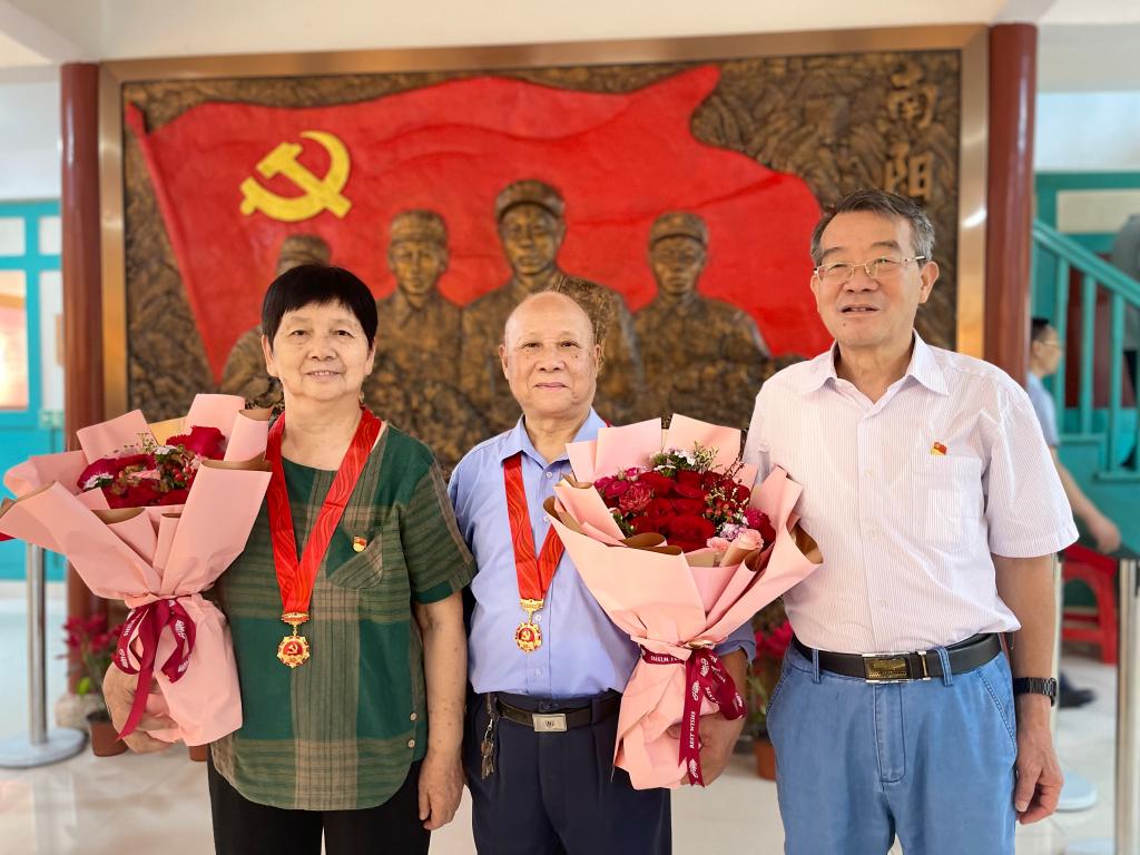 活動現(xiàn)場,離退休黨總支書記歐春木同志為王淑英、林依康兩位老黨員代表頒發(fā)“光榮在黨50年”紀念章,兩位老黨員深情回顧我黨百年輝煌而又艱辛的奮斗歷程,表達了感黨恩、聽黨話、跟黨走的堅定決心,充分展現(xiàn)了在黨一輩子、忠誠一輩子、奉獻一輩子的赤子情懷。