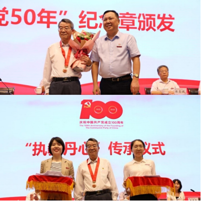 6月24日下午,學(xué)校召開慶祝中國共產(chǎn)黨成立100周年暨“兩優(yōu)一先”表彰大會,校黨委書記曾武祈為老黨員代表頒發(fā)了“光榮在黨50年”紀(jì)念章和鮮花,并舉行了新、老教師黨員“執(zhí)教丹心”的傳承儀式。紀(jì)念章頒發(fā)儀式莊重而簡樸,光輝的紀(jì)念章代表著以習(xí)近平同志為核心的黨中央對老黨員教師們的關(guān)懷和溫暖,映照著老黨員教師為教育事業(yè)堅守的不變初心。