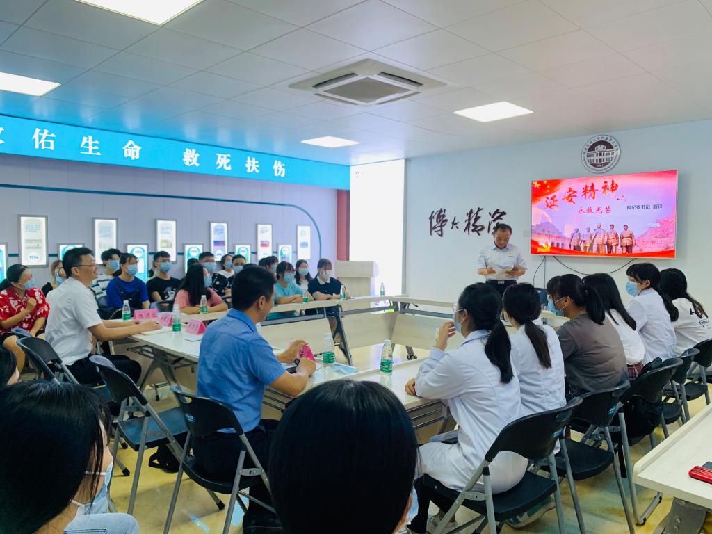 在福建醫(yī)科大學(xué)附屬第二醫(yī)院,游鋒為在院實(shí)習(xí)的45位學(xué)生上了一堂生動(dòng)嚴(yán)肅的專題黨課《延安精神,永放光芒》,重溫百年黨史,同學(xué)們表示,今后將向先輩們學(xué)習(xí),要把個(gè)人理想追求、職業(yè)發(fā)展融入到黨和國(guó)家事業(yè)之中,勇?lián)?dāng)、勤奉獻(xiàn),用實(shí)際行動(dòng)為家鄉(xiāng)建設(shè)發(fā)展、為人民群眾辦實(shí)事、解難題。