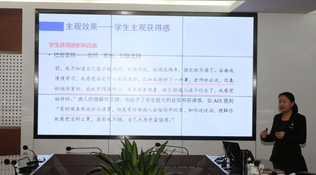 課題組從研究背景與問題、研究內(nèi)容與方法、研究結(jié)論與對策、研究成果與影響、研究的不足之處五個方面詳細匯報了課題研究任務(wù)的完成情況。與會專家肯定了該課題的研究成效,認為以醫(yī)藥衛(wèi)生類職業(yè)教育精準扶貧為研究案例,探索學校、政府、企業(yè)、社會四方協(xié)同合作的模式與職業(yè)教育精準扶貧的路徑與對策,一定程度上補充了目前醫(yī)藥衛(wèi)生類職業(yè)院校在政府、學校、企業(yè)及社會合作辦學研究的不足,對脫貧攻堅工作也具有一定的理論指導和實踐推廣意義。建議課題后續(xù)研究中,可將已探索的校政企社多元共促模式擴大應(yīng)用到其他專業(yè),并向同類職業(yè)院校輻射應(yīng)用。