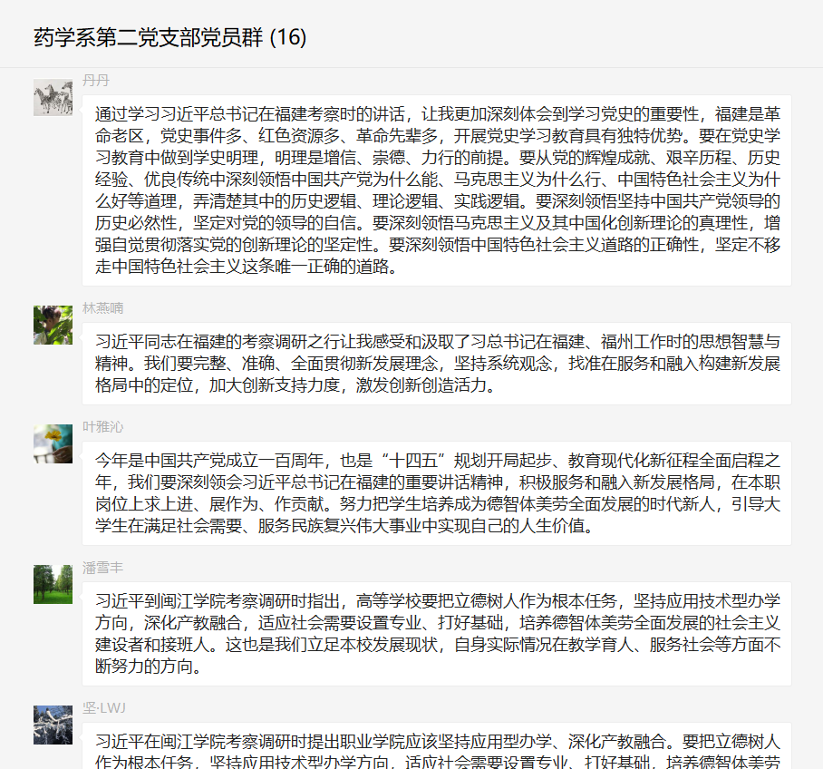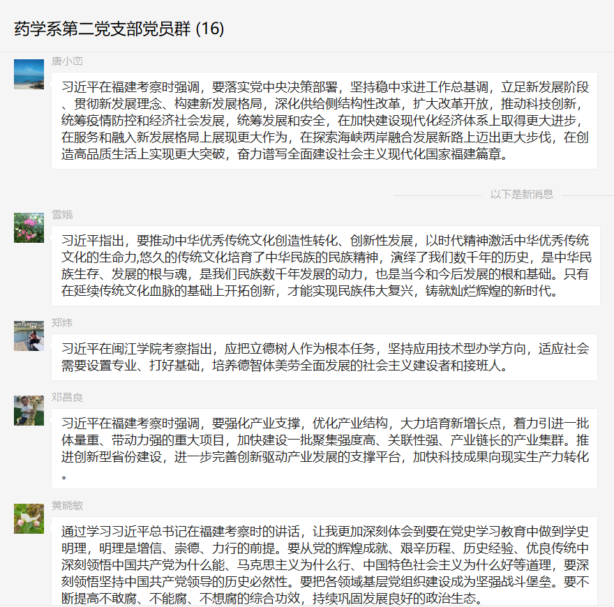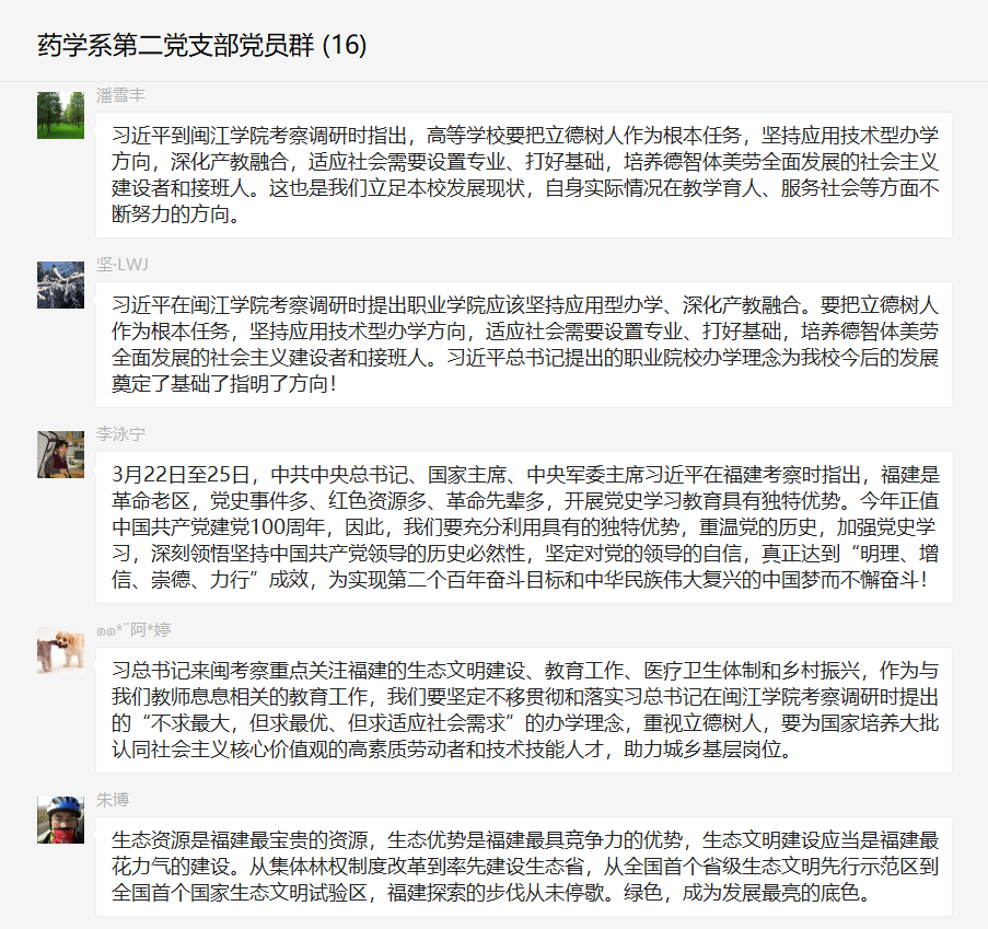 為學(xué)習(xí)貫徹習(xí)近平總書(shū)記在福建考察調(diào)研時(shí)的重要講話(huà)精神,藥學(xué)院第二黨支部于2021年3月30日開(kāi)展線(xiàn)上專(zhuān)題學(xué)習(xí)。本次專(zhuān)題學(xué)習(xí)由支部書(shū)記劉丹丹同志主持。