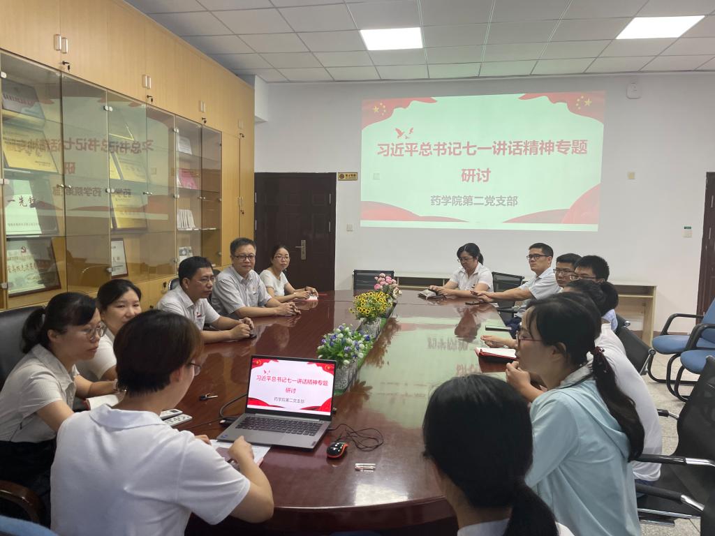 2021年7月1日,慶祝中國共產黨成立100周年大會在北京天安門廣場隆重舉行。中共中央總書記、國家主席、中央軍委主席習近平發(fā)表重要講話。藥學院第二黨支部全體黨員在大會直播結束后于藥學院會議室集中,圍繞習近平總書記“七一”重要講話開展了專題研討。本次專題研討由支部書記劉丹丹同志主持。