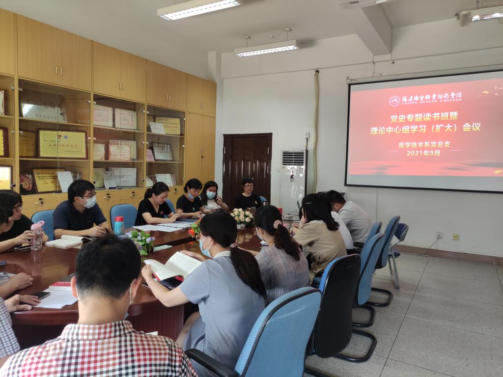 9月18日,醫(yī)學(xué)技術(shù)系黨總支召開黨史專題讀書班第四次學(xué)習(xí)暨理論學(xué)習(xí)中心組(擴大)會議。會議由醫(yī)學(xué)技術(shù)系黨總支書記陳俊穎同志主持,醫(yī)學(xué)技術(shù)系領(lǐng)導(dǎo)班子、黨總支委員、黨支部書記、教研室主任、團總支書記、系辦人員及輔導(dǎo)員等參加了會議。