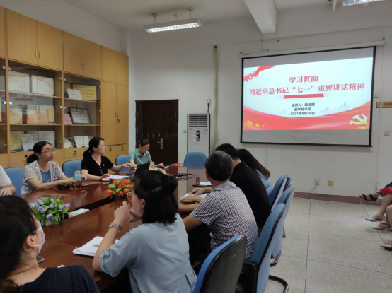 此次黨課宣講,陳俊穎先結(jié)合短視頻,帶領(lǐng)黨員同志重溫了慶祝中國共產(chǎn)黨成立100周年大會(huì)的盛況。接下來,她從 “七一”重要講話的精神解讀、四個(gè)偉大成就、“九個(gè)必須”的歷史經(jīng)驗(yàn)和重要要求、“一個(gè)號(hào)召”等四個(gè)方面展開黨課內(nèi)容,引導(dǎo)黨員同志深入學(xué)習(xí)習(xí)近平總書記重要講話精神。她特別強(qiáng)調(diào),偉大建黨精神是我們黨的寶貴財(cái)富,黨員教師要弘揚(yáng)好偉大建黨精神,堅(jiān)定理想信念、立足崗位、守正創(chuàng)新,用實(shí)際行動(dòng)踐行立德樹人根本任務(wù),引導(dǎo)青年成長成才。