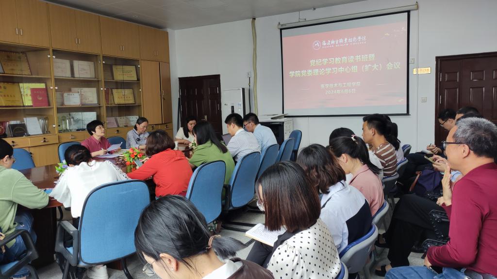 6月6日,醫(yī)學(xué)技術(shù)與工程學(xué)院召開(kāi)黨紀(jì)學(xué)習(xí)教育讀書(shū)班第五次學(xué)習(xí)暨黨委理論學(xué)習(xí)中心組(擴(kuò)大)會(huì)議,主要傳達(dá)近期重要會(huì)議精神,專題學(xué)習(xí)《中國(guó)共產(chǎn)黨紀(jì)律處分條例》第二編分則第八章對(duì)違反廉潔紀(jì)律行為的處分,并觀看警示教育片、通報(bào)高校違反紀(jì)律的典型案例,開(kāi)展黨紀(jì)學(xué)習(xí)教育專題黨課《黨史上的組織建設(shè)》。本次學(xué)習(xí)由學(xué)院黨委書(shū)記柯瓊鶯主持,全院教職工黨員參加學(xué)習(xí)。
