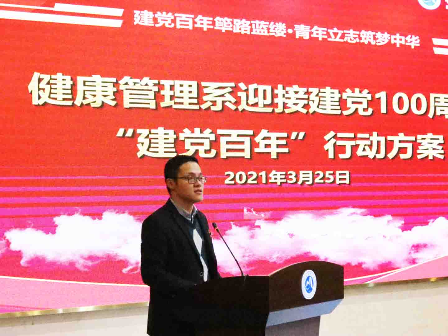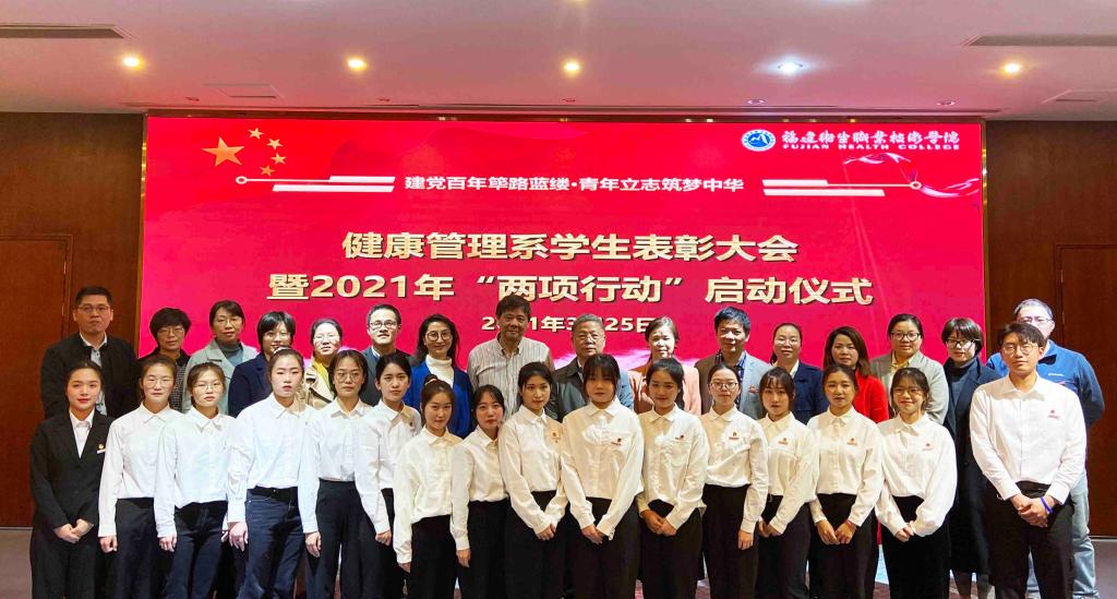 2021年3月25日下午,健康管理系以“建黨百年篳路藍縷,青年立志筑夢中華”為主題,舉行學生表彰大會暨2021年“兩項行動”啟動儀式,大會表彰了2019~2020學年先進集體和先進個人,啟動了健康管理系2021年迎接建黨100周年“建黨百年”行動和“學生管理質(zhì)量提升”行動。校領(lǐng)導陳貞健副院長出席活動并講話,學工部副部長張麗萍、系關(guān)工委鄭向紅主任、王屏副主任、伍麗萍老師,系黨政班子成員及全體教職工和學生代表400多人參加活動。