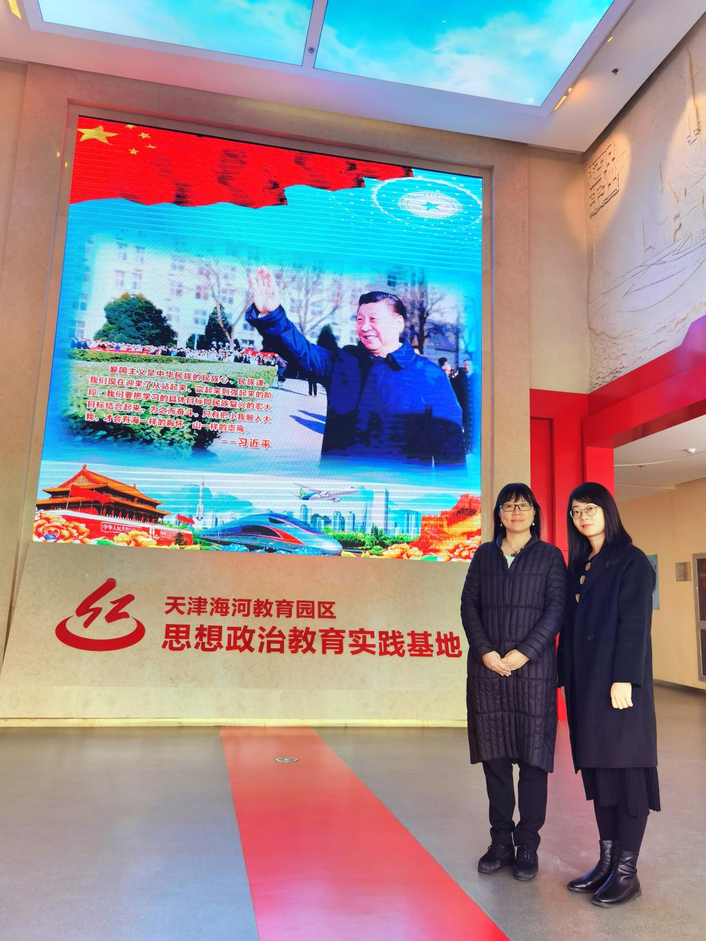 在理論學習之余,熊美蘭和吳薇兩位老師還參觀了天津現(xiàn)代職業(yè)技術教育學院的思想政治教育實踐基地。