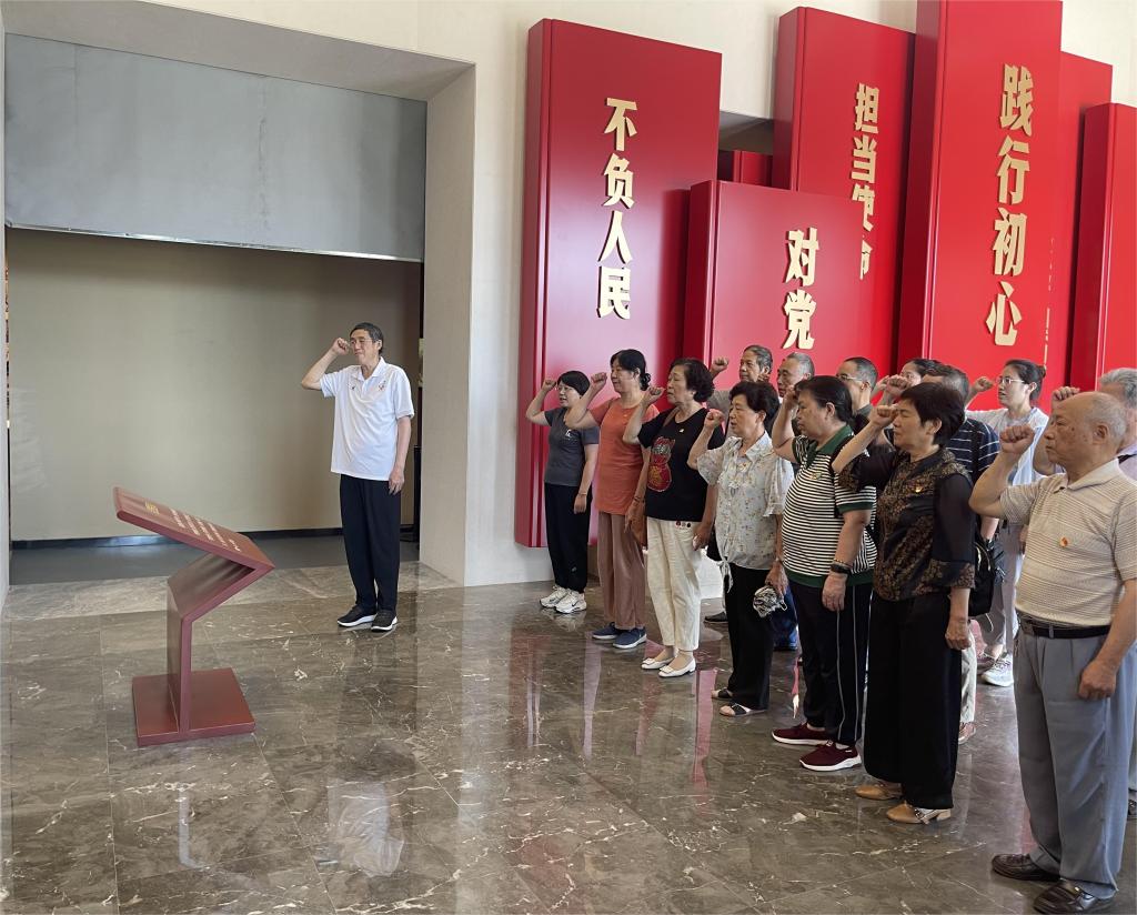 參觀結(jié)束后,黨員同志們?cè)趥髁?xí)館黨員活動(dòng)室集中溫習(xí)《中共福建省委組織部 中共福建省委老干部局關(guān)于組織離退休干部黨員參加學(xué)習(xí)貫徹習(xí)近平新時(shí)代中國特色社會(huì)主義思想主題教育有關(guān)事項(xiàng)的通知》。離退休第一黨支部書記陳新、第二黨支部書記劉瓔婷以《堅(jiān)定理想信念 鑄牢對(duì)黨忠誠——學(xué)習(xí)習(xí)近平新時(shí)代中國特色社會(huì)主義思想的體會(huì)》為主題,分別開展專題黨課,向黨員同志分享學(xué)習(xí)貫徹黨的創(chuàng)新理論的收獲體會(huì)。會(huì)后,全體黨員面對(duì)黨旗,重溫了入黨誓詞。