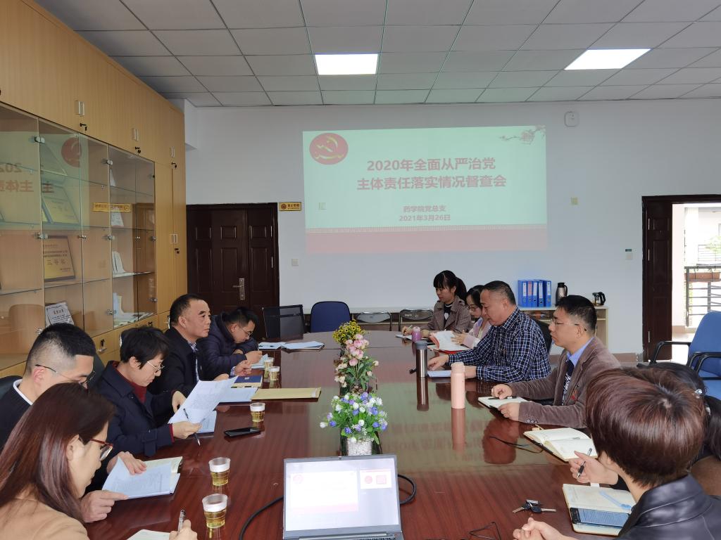 2021年3月26日,藥學(xué)院黨總支在207會議室召開2020年全面從嚴(yán)治黨主體責(zé)任落實情況督查會議,學(xué)院紀(jì)委書記游鋒、黨委宣傳部部長柯瓊鶯、黨政辦公室副主任陳盛蘭、黨委組織統(tǒng)戰(zhàn)部副部長謝宗穎、人事處江山、紀(jì)委辦公室金城等一行到場巡查,藥學(xué)院黨政領(lǐng)導(dǎo)班子成員、總支支委、各支部書記參加本次會議。