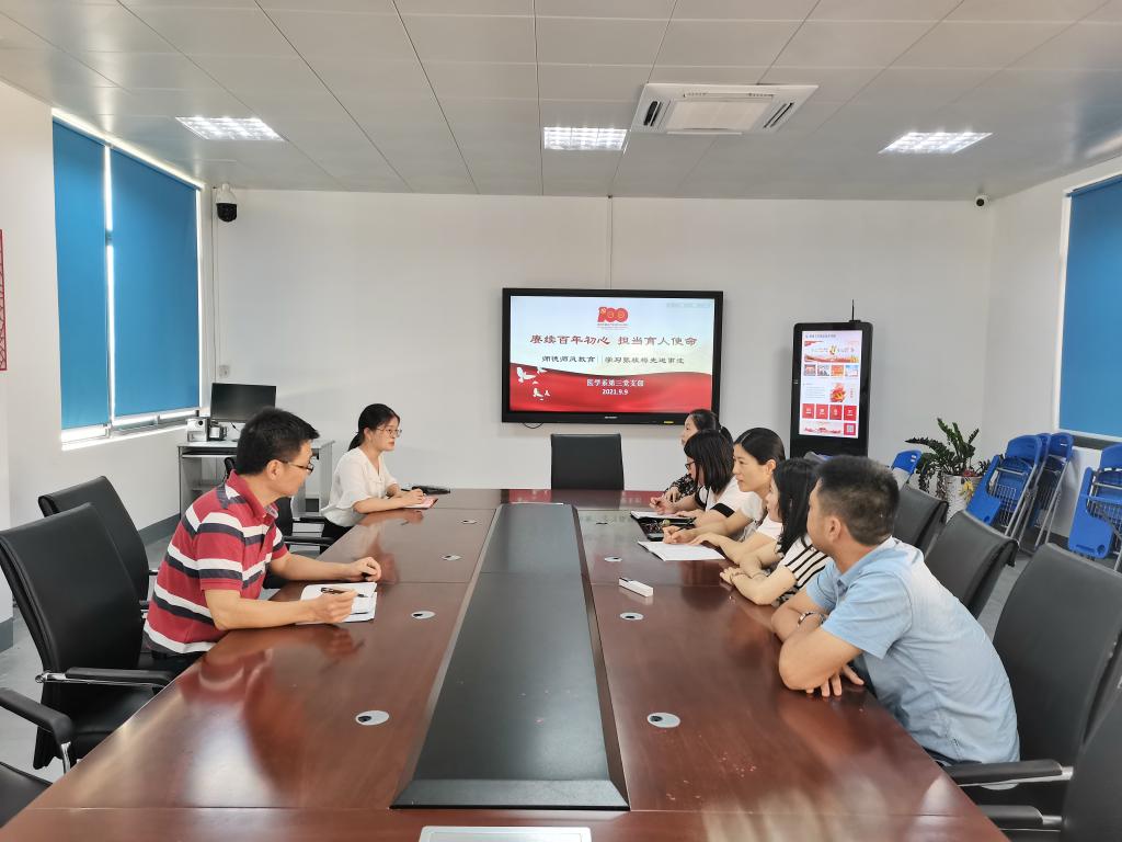 為加強支部師德師風建設,激勵支部黨員教師堅守教育初心,牢記立德樹人使命,2021年9月9日中午,醫(yī)學系第三黨支部在實訓樓311開展“賡續(xù)百年初心,擔當育人使命”主題師德師風教育,組織支部黨員們一同觀看全國“時代楷?!薄獜埞鹈吠鞠冗M事跡紀錄片。