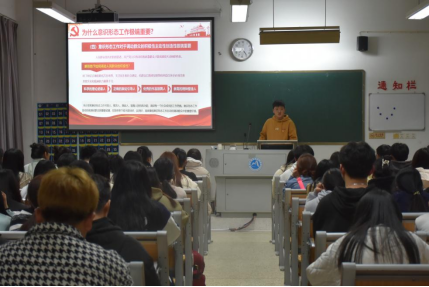 課上,苗航針對“意識形態(tài)工作的內(nèi)涵”、“黨的歷代領(lǐng)導(dǎo)人對意識形態(tài)工作的重視”、“意識形態(tài)領(lǐng)域面臨的風(fēng)險與挑戰(zhàn)”等內(nèi)容開展解讀,帶領(lǐng)同學(xué)們學(xué)習(xí)了習(xí)近平總書記關(guān)于意識形態(tài)工作的重要論述,強調(diào)意識形態(tài)工作是我們黨一項極端重要的工作,結(jié)合了國內(nèi)外案例講解意識形態(tài)工作的重要性。希望同學(xué)們能夠提升辨別是非能力,自覺抵御外來干擾,堅定理想信念,規(guī)范自我言行,不斷修身養(yǎng)性、知敬畏守底線,筑牢思想防線,樹立正確的世界觀、人生觀和價值觀,堅定共產(chǎn)主義信念,堅持中國共產(chǎn)黨領(lǐng)導(dǎo),勇于并善于同各種錯誤思潮作斗爭,使大學(xué)生成為社會主義事業(yè)的建設(shè)者和合格的接班人。