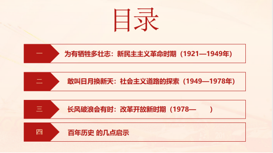課上,孔祥榮分別從新民主主義革命時(shí)期、社會主義道路的探索、改革開放新時(shí)期、百年歷史的幾點(diǎn)啟示講解了,一百年來,中國共產(chǎn)黨為爭取民族獨(dú)立、人民解放和實(shí)現(xiàn)國家富強(qiáng)、人民幸福而不懈奮斗。中國共產(chǎn)黨始終代表最廣大人民的根本利益,實(shí)現(xiàn)好、維護(hù)好、發(fā)展好最廣大人民的根本利益,把人民對美好生活的向往作為我們的奮斗目標(biāo),讓廣大人民共享改革發(fā)展的成果,在兌現(xiàn)了全面建成小康社會的鄭重承諾以后,又開啟了全面建設(shè)社會主義現(xiàn)代化國家新征程,積極推動共同富裕有實(shí)質(zhì)性進(jìn)展。強(qiáng)調(diào),當(dāng)代青年有幸見證黨的百年華誕,生逢盛世,亦當(dāng)不負(fù)盛世,要以昂揚(yáng)姿態(tài)把青春理想投入國家與民族的偉大事業(yè)中,把青春力量凝聚到時(shí)代夢想和美好前程中,以奮斗之青春不負(fù)黨和人民的厚望,書寫人生的繁花似錦