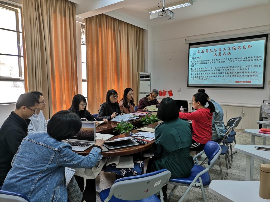 隨后,支部黨員學(xué)習(xí)了《意識形態(tài)工作“一會一報”“一事一報”管理辦法》、《關(guān)于調(diào)整校園網(wǎng)絡(luò)文化建設(shè)領(lǐng)導(dǎo)小組及校園網(wǎng)絡(luò)文化五支隊伍的通知》、《福建衛(wèi)生職業(yè)技術(shù)學(xué)院貫徹落實全國教育大會精神實施方案》、福建衛(wèi)生職業(yè)技術(shù)學(xué)院教學(xué)事故及教學(xué)管理事故認(rèn)定和處理辦法(修訂)等4份文件,支部黨員教師進一步明確了在學(xué)校意識形態(tài)工作、校園網(wǎng)絡(luò)文化建設(shè)工作、日常教學(xué)工作中的崗位職責(zé)。