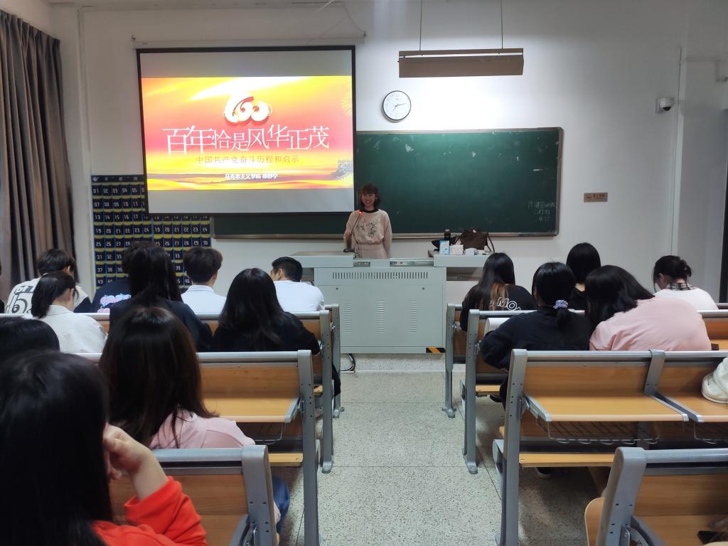 黨史學習教育基礎在學習、目的在教育,將黨史學習教育融于立德樹人全過程。2021年4月,馬克思主義學院教師對指導的社團成員持續(xù)開展“百年黨史 精神永存”系列宣講活動,讓同學們走進歷史深處,了解百年大黨的夢想與追求、情懷與擔當。
