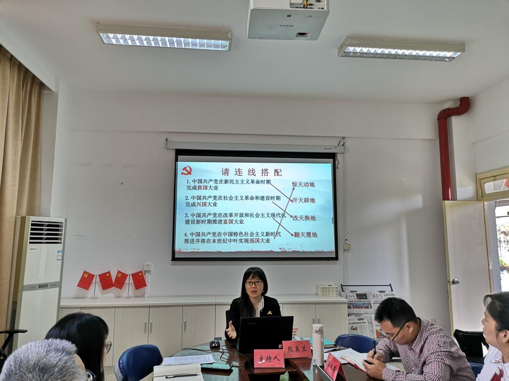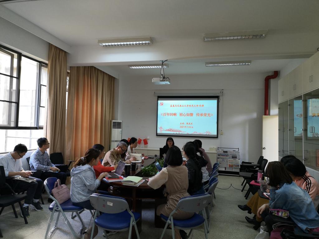 2021年5月6日上午,直屬馬克思主義學(xué)院黨支部書(shū)記熊美蘭以《百年回響 初心如磐 傳承榮光》為題,為支部全體黨員作了黨史學(xué)習(xí)教育專題黨課報(bào)告。