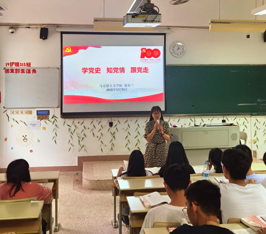 2021年5月31日下午,馬克思主義學(xué)院熊美蘭老師在教學(xué)樓212為20級臨床醫(yī)學(xué)305、306學(xué)生作題為《學(xué)黨史 知黨情 跟黨走》的黨史主題宣講。