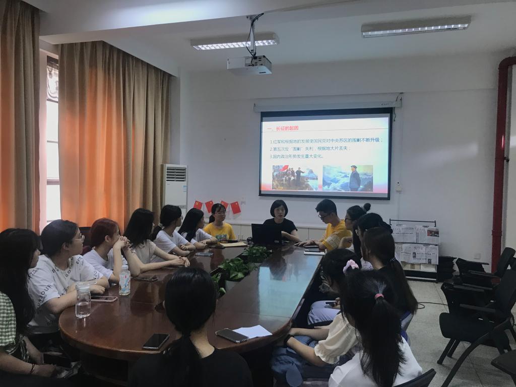為認(rèn)真落實(shí)黨中央關(guān)于加強(qiáng)黨史學(xué)習(xí)教育的部署,響應(yīng)學(xué)校黨委開展黨史學(xué)習(xí)教育的號(hào)召,2021年5月31日,鄭冰老師在行政樓107為習(xí)近平新時(shí)代中國特色社會(huì)主義思想讀書社夢之隊(duì)的成員開展題“紅色經(jīng)典作品中的黨史故事——紅軍不怕遠(yuǎn)征難”專題教學(xué)活動(dòng),