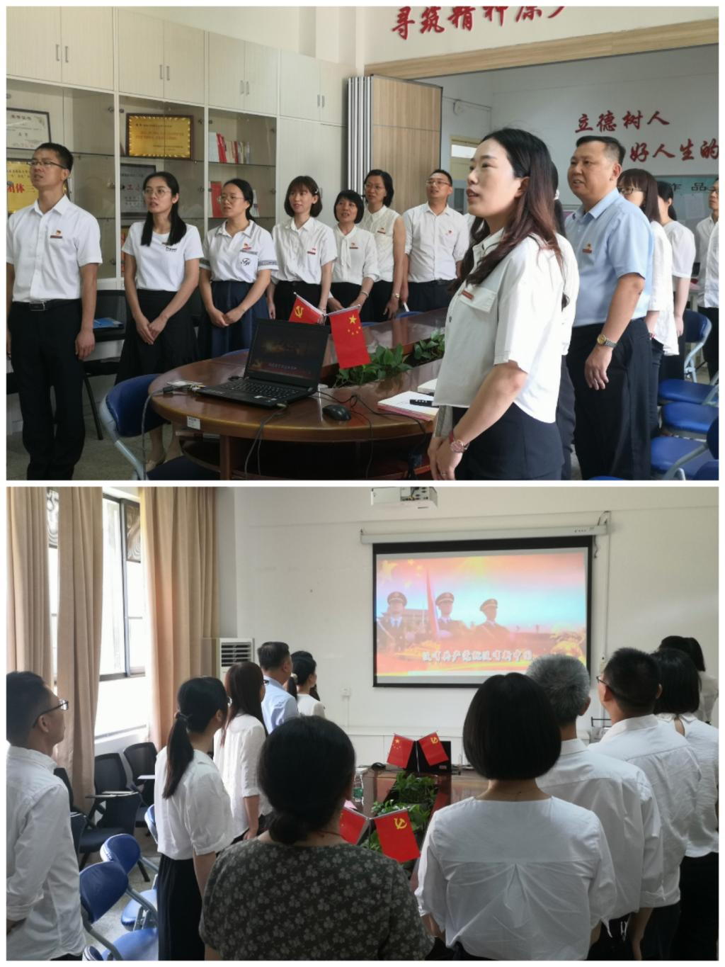 活動一開始,全體黨員投放政治生日貼,回憶起黨組織的培養(yǎng)歷程,增強了榮譽感和歸屬感,更強化了黨員宗旨意識和責任意識。在鮮艷的黨旗面前,魏立娜作為領誓人,帶領支部黨員一起高舉右手,重溫入黨誓詞:“我志愿加入中國共產(chǎn)黨……永不叛黨?!币磺袀ゴ蟮氖聵I(yè)都需要合格的人才來擔當。辦好思想政治理論課關鍵在教師。思政課教師承載著塑造時代新人的時代重任,肩負立德樹人的使命擔當。隨后黨支部全體黨員教師們重溫思政課教師職業(yè)宣誓。