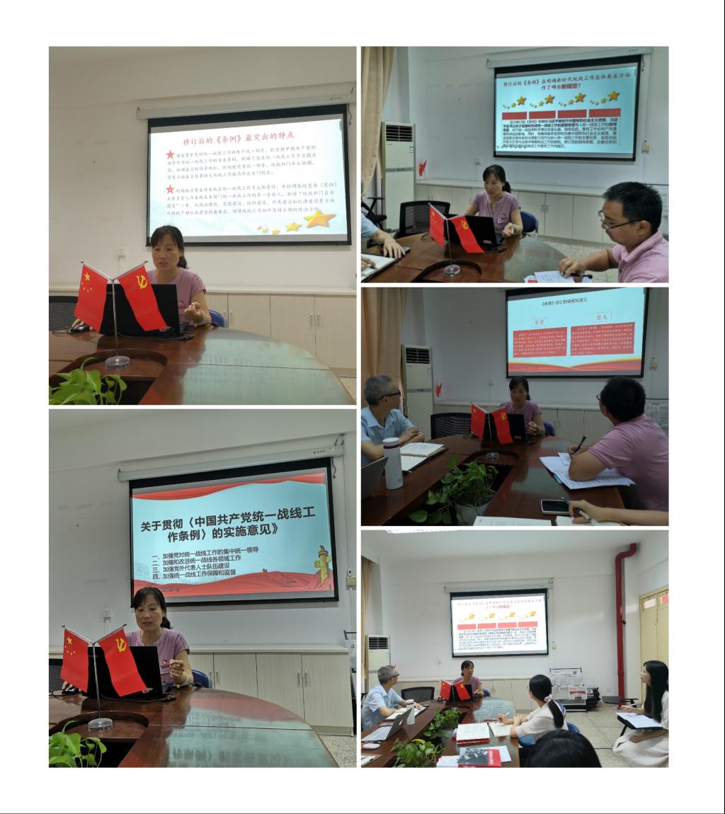 會上,黨支部開展了《中國共產(chǎn)黨統(tǒng)一戰(zhàn)線工作條例》專題講座,由直屬馬克思主義學院黨支部副書記來朋珍主講。她從《條例》的背景、意義、新時代具體要求和最突出的特點等方面進行解讀。全體黨員同志還進一步學習了《關于貫徹〈中國共產(chǎn)黨統(tǒng)一戰(zhàn)線工作條例〉的實施意見》。