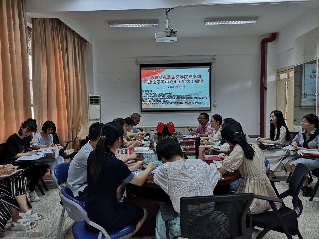 2021年9月1日,直屬馬克思主義學院黨支部在行政樓107召開黨支部理論學習中心組(擴大)會議,會議由黨支部書記熊美蘭主持。