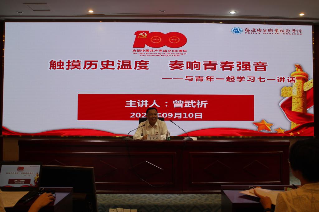 為深入學(xué)習(xí)貫徹習(xí)近平總書(shū)記在慶祝中國(guó)共產(chǎn)黨成立100周年大會(huì)上的重要講話(huà)精神,2021年9月10日,直屬馬克思主義學(xué)院全體教師黨員在實(shí)訓(xùn)樓4樓報(bào)告廳參加校黨委書(shū)記曾武祈的題為“觸摸歷史溫度,奏響青春強(qiáng)音”的黨課學(xué)習(xí)。
