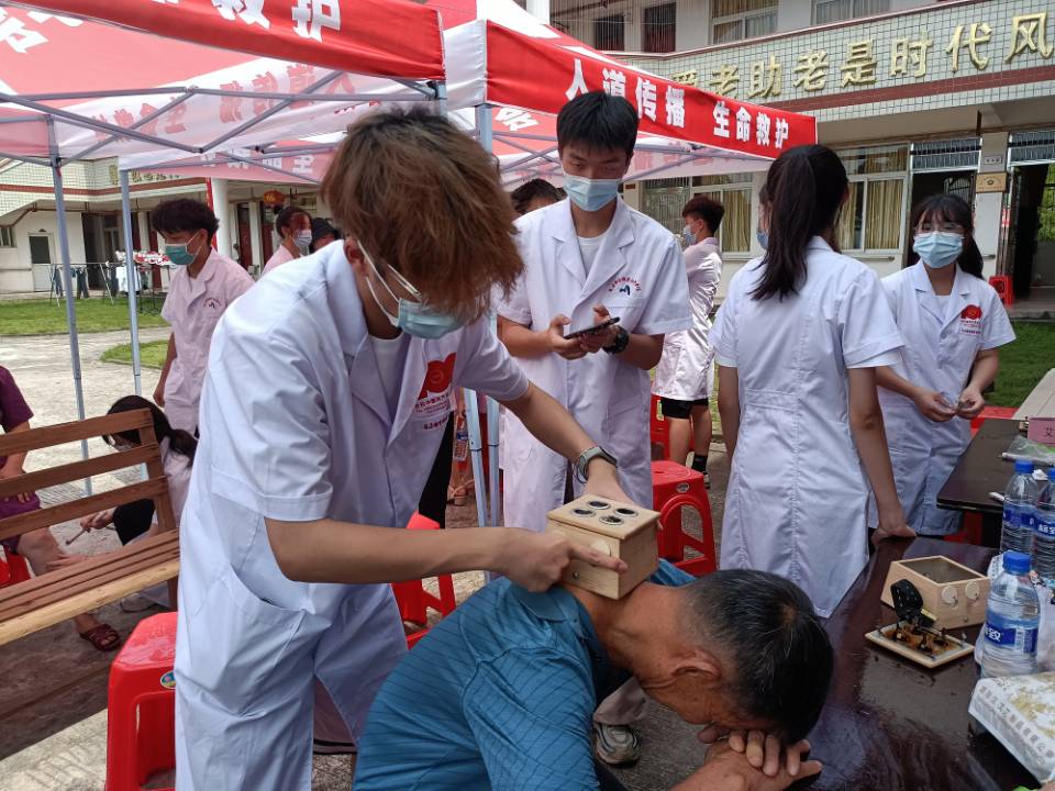 實踐隊先后到樓子壩村、新橋村以及新橋養(yǎng)老院為當地群眾開展測量血壓、按摩推拿、拔罐等義診活動。通過開展活動,隊員們以自己的特長和專業(yè)技能回饋社會,以實際行動詮釋了醫(yī)學生的責任和擔當。