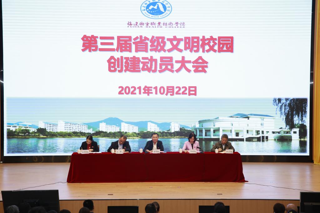 10月22日上午,我校在學(xué)術(shù)報(bào)告廳召開第三屆省級(jí)文明校園創(chuàng)建動(dòng)員大會(huì)。學(xué)校領(lǐng)導(dǎo)班子成員、副科級(jí)及以上干部、各部門評(píng)建工作聯(lián)絡(luò)員、全體教研室主任、實(shí)訓(xùn)中心主任及副主任和專兼職輔導(dǎo)員共190余人參加會(huì)議。會(huì)議由黨委副書記李美華主持。