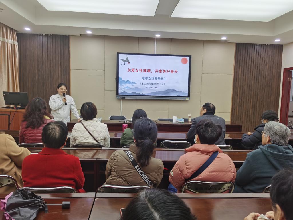 值此“三八”國際婦女節(jié)來臨之際,為關(guān)愛女性健康,倡導(dǎo)健康生活方式,增強女性自我保健意識,3月6日,福建衛(wèi)生職業(yè)技術(shù)學(xué)院老年大學(xué)組織繼續(xù)教育學(xué)院、醫(yī)學(xué)院師生一行前往閩侯縣老年大學(xué),為女性學(xué)員們帶來一場溫馨的“關(guān)愛女性健康,共度美好春天”公益科普講座,向女性學(xué)員們致以節(jié)日祝福和美好祝愿。