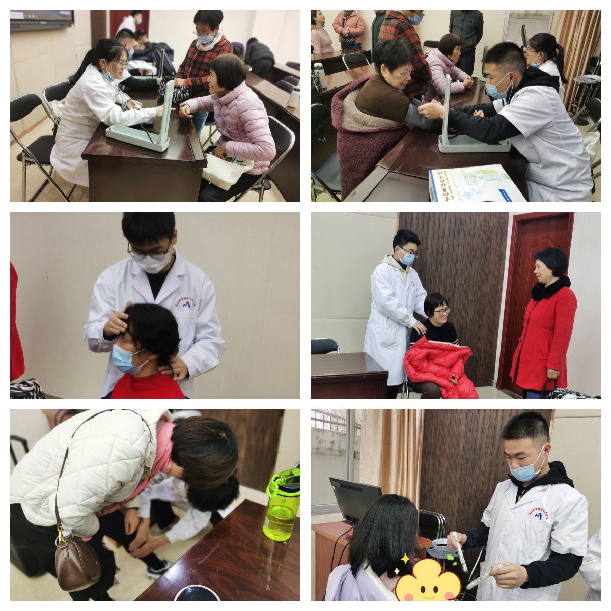 講座結(jié)束后,由醫(yī)學(xué)院學(xué)生組成的義診團隊迅速投入工作。他們?yōu)槔夏昱詫W(xué)員們進行了血壓、血糖測量,心肺功能聽診等基礎(chǔ)健康檢查,并根據(jù)檢查結(jié)果提供個性化的健康建議,同時針對部分老年學(xué)員的脊柱亞健康等問題進行手法松解、艾灸推拿。同學(xué)們認真細致的服務(wù)態(tài)度,讓老年學(xué)員們感受到了濃濃的關(guān)懷。