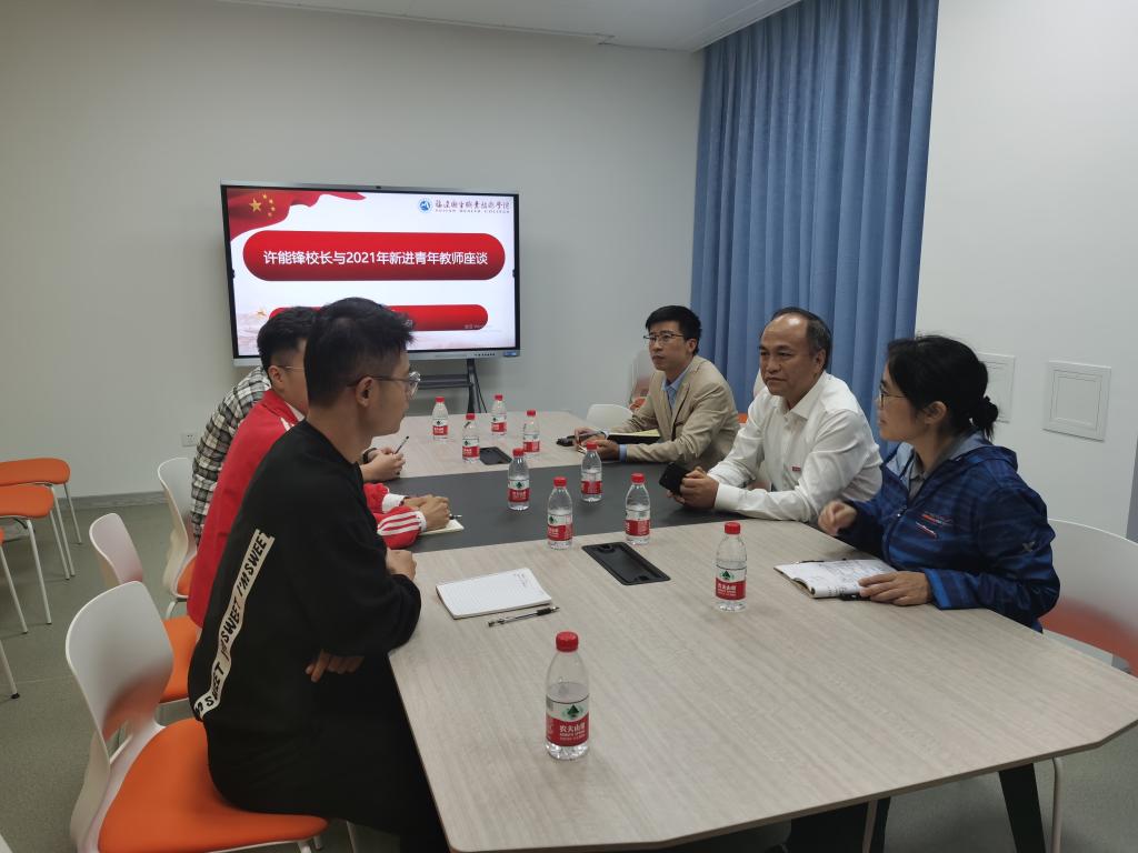 許能鋒還與體育部今年新進(jìn)三位教師進(jìn)行了座談。他認(rèn)為,青年教師要以“敬”“靜”“進(jìn)”“凈”的心態(tài)面對(duì)工作,以陶行知的每日四問勉勵(lì)自身。