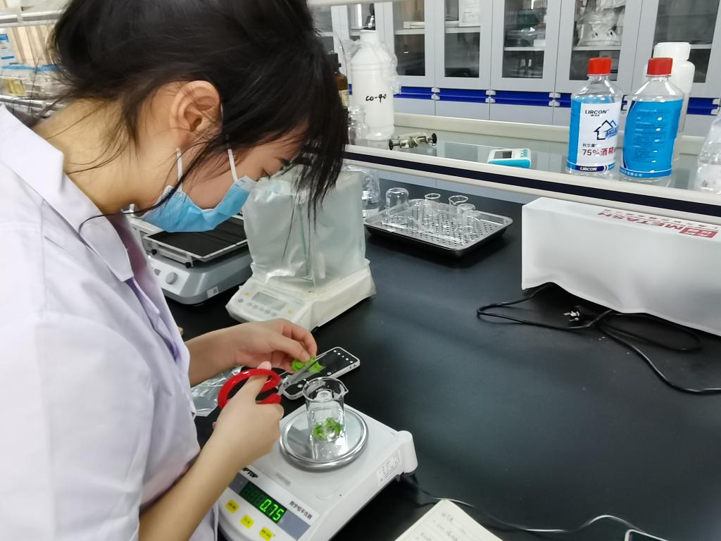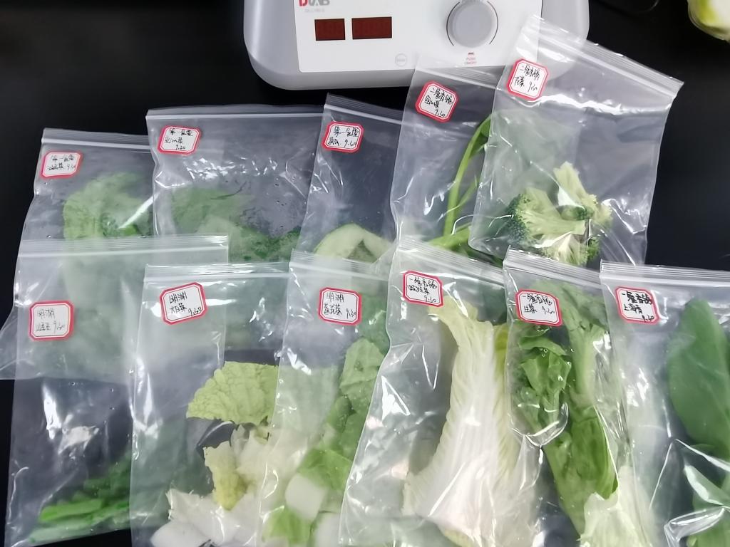 食品質(zhì)量檢測(cè)小組隨機(jī)抽取第一食堂、明湖食堂及餐飲檔口當(dāng)日切洗浸泡后的蔬菜包括空心菜、黃瓜、花菜、娃娃菜、生菜、上海青等蔬菜,隨機(jī)抽取食堂正在使用及儲(chǔ)存的食用油,采用酶抑制率法檢測(cè)蔬菜中的農(nóng)藥殘留、用快速檢測(cè)法測(cè)定食用油酸價(jià)和過(guò)氧化值,檢測(cè)工作在健康管理系安全性評(píng)價(jià)實(shí)驗(yàn)室開展。