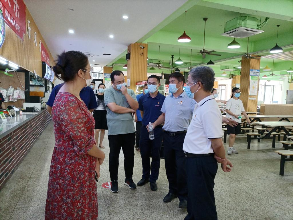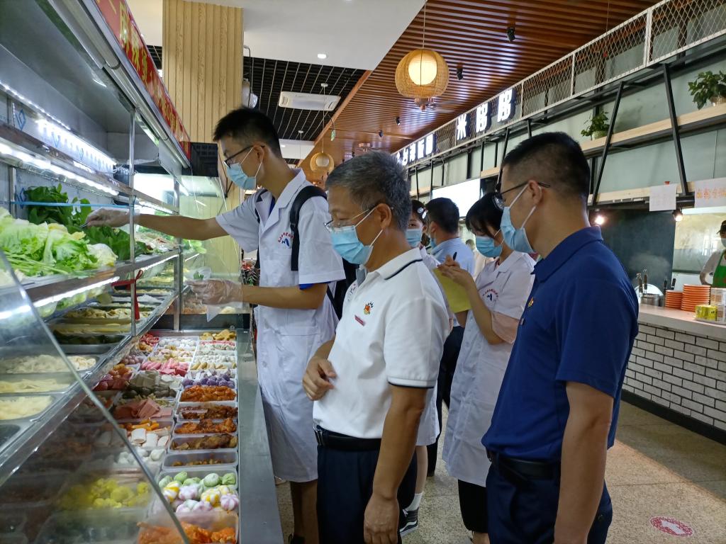 疫情防控關(guān)鍵時(shí)期,為保障師生國(guó)慶期間“舌尖上的安全”,2021年9月30日,健康管理系“雙帶頭人”教師黨支部聯(lián)合院直機(jī)關(guān)黨總支后勤管理處、招標(biāo)采購(gòu)中心黨支部對(duì)學(xué)校第一食堂、第二食堂、明湖食堂及餐飲檔口的蔬菜、食用油和衛(wèi)生情況開展質(zhì)量檢測(cè)和督查。副校長(zhǎng)陳貞健現(xiàn)場(chǎng)指導(dǎo)工作。