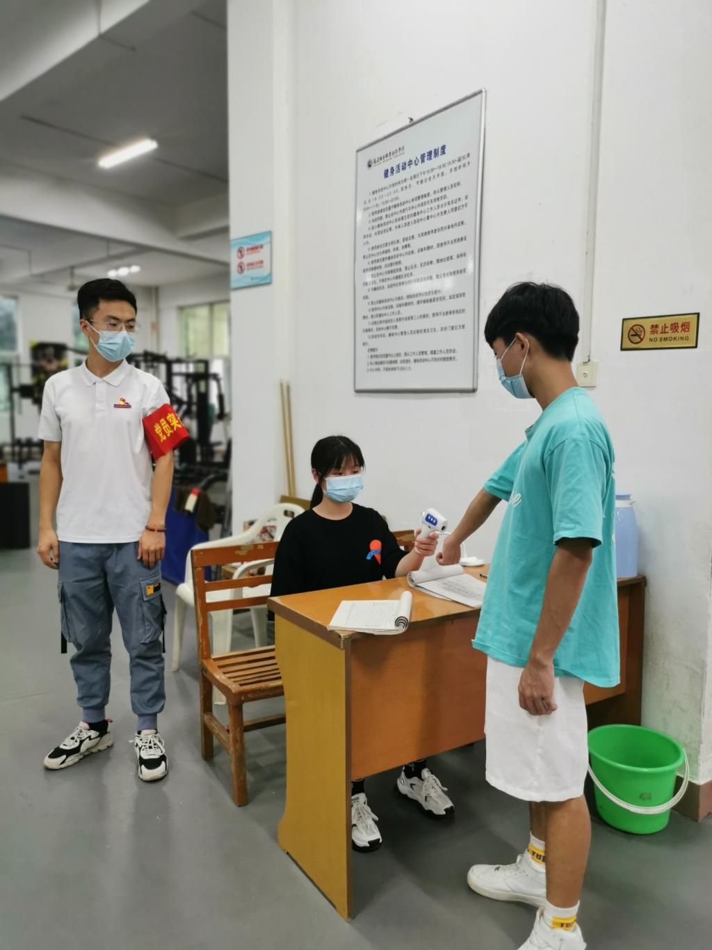 為保證在體育場館內(nèi)活動師生的安全,體育部黨員突擊隊隊員和志愿者對進(jìn)館師生進(jìn)行身份登記、體溫監(jiān)測和綠碼檢查,嚴(yán)把入口關(guān),控制進(jìn)場人數(shù),督導(dǎo)安全運動間隔距離,塑造良好運動氛圍,做到“安全距離,健康運動”。