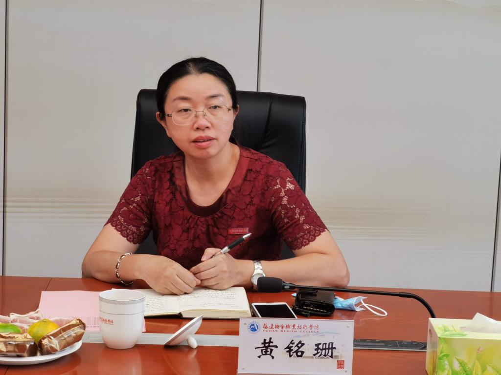 黃銘珊對(duì)各位同學(xué)成為福建衛(wèi)職院的一份子表示熱烈歡迎,并致以中秋祝福,她向?qū)W生代表們介紹了學(xué)校的發(fā)展情況,希望同學(xué)們盡快適應(yīng)大學(xué)生活,融入集體,做好學(xué)業(yè)、職業(yè)生涯規(guī)劃,不斷豐富自己、提高自身綜合素質(zhì);同時(shí),積極配合疫情防控要求,做好個(gè)人常態(tài)化防護(hù)工作。