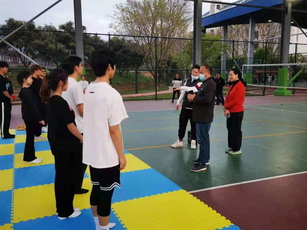 3月29日下午,校長(zhǎng)許能鋒,副校長(zhǎng)、校體委主任鄭翠紅來到田徑運(yùn)動(dòng)場(chǎng),與正在訓(xùn)練中的啦啦操運(yùn)動(dòng)隊(duì)親切交流。