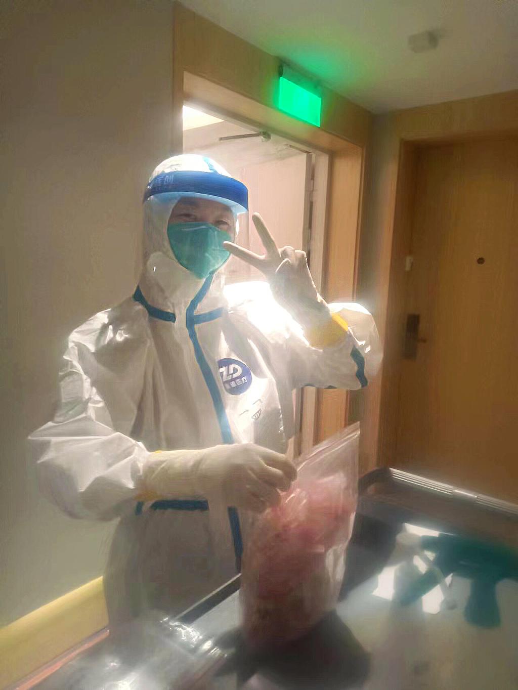 蒲奕彤,我校19級預防醫(yī)學專業(yè)校友。10月25日接到倉山區(qū)下渡街道社區(qū)衛(wèi)生服務中心的通知后,蒲奕彤立馬奔赴隔離酒店負責核酸采樣、物資管理、院感工作。每當有街道派車將密接人員轉運過來,不論時間多晚,哪怕是凌晨,她都會立馬做好防護前往污染區(qū)進行隔離人員安排以及抗原、核酸檢測,在病毒和群眾之間筑起了阻斷疫情傳播的堅固堡壘。她表示,這是一場沒有硝煙的戰(zhàn)斗,大家上下同心、眾志成城,我們終會打贏這場疫情防控阻擊戰(zhàn)!