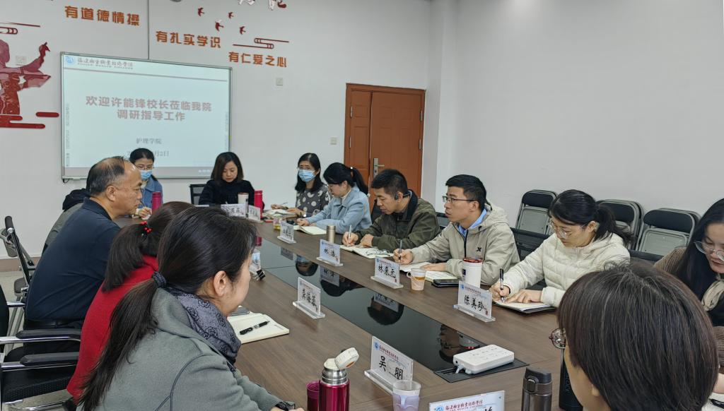 12月2日上午,校長許能鋒到護理學(xué)院調(diào)研指導(dǎo)工作。黨政辦公室主任、護理學(xué)院黨政班子成員、各教研室主任參加座談會。
