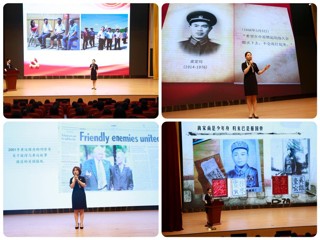 宣講員們聲情并茂地講述,輔以一張張珍貴的照片、一個(gè)個(gè)鮮活的人物、一段段震撼的場(chǎng)景,讓在場(chǎng)的師生們無(wú)不被那些為中華民族獨(dú)立自由、抵御外侮和偉大復(fù)興做出巨大貢獻(xiàn)的英雄兒女所感動(dòng)。整場(chǎng)宣講形式新穎,聲情并茂,極具感染力,深深吸引了現(xiàn)場(chǎng)師生,贏得陣陣熱烈的掌聲。