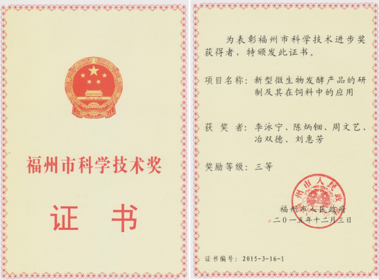2.2015年獲福州市科技進(jìn)步獎(jiǎng)三等獎(jiǎng)(排名第一)